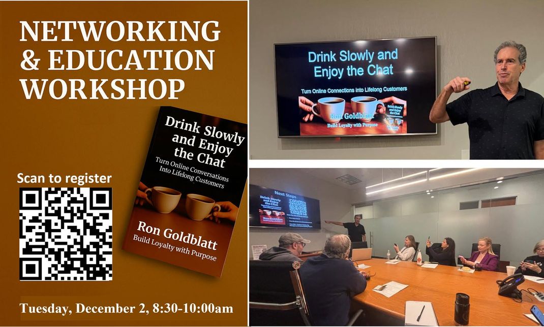 We kick off the morning workshop with speed networking, and a session on how to turn online connections into lifelong customers which covers three essential strategies local businesses can use to improve their visibility and bring customers back. We also preview a new book, Drink Slowly and Enjoy the Chat, focused on building loyalty with purpose.